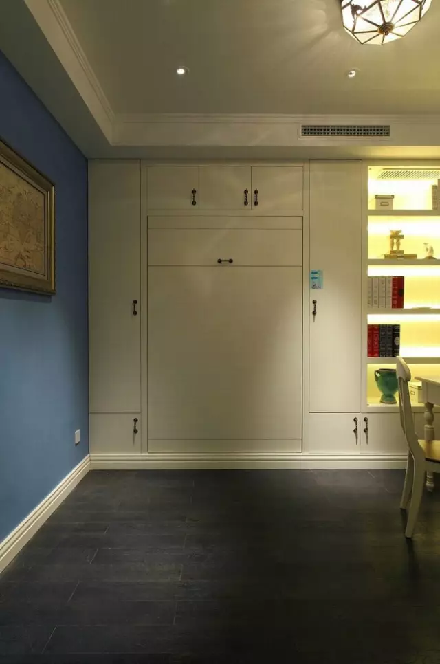 這樣的壁柜比傳統(tǒng)的小格子博古架更加吸引人,一種大氣、高雅的感覺在看到這里時油然而生。