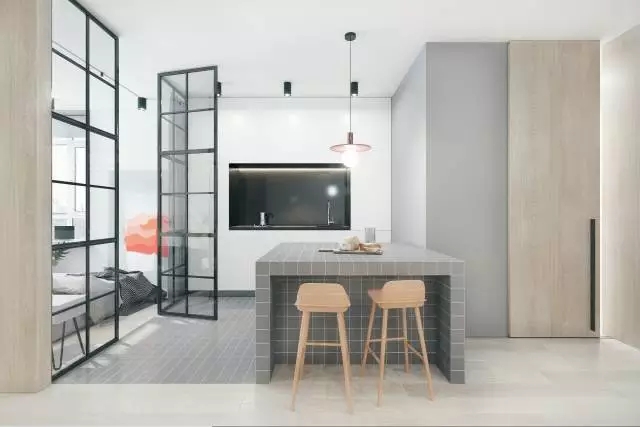 一道極具現(xiàn)代氣息的玻璃隔斷墻,