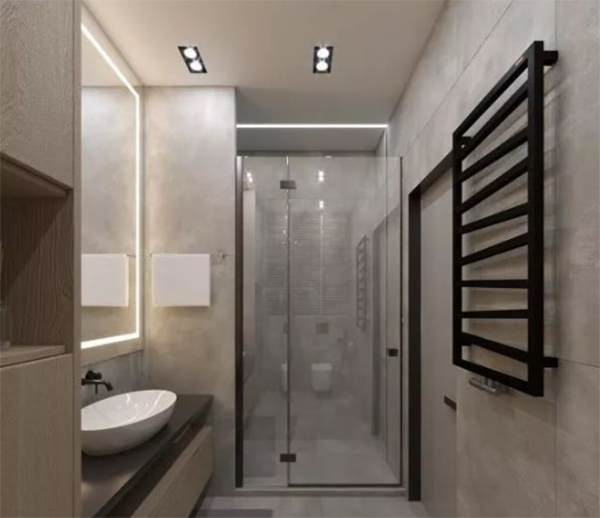 所謂分區(qū)光源設計,就是根據(jù)洗漱臺、淋浴區(qū)和馬桶區(qū)功能區(qū)都分別設置光源,多方位補光。這樣設計對墻面的折射也會更強,光線更充足。多方位補光,比起一盞主燈光照更強。