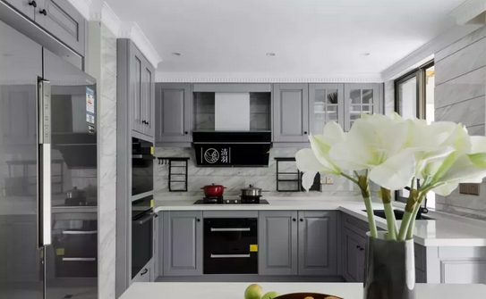 現(xiàn)在流行的高級灰也可以“入駐”廚房,立馬提高了廚房的檔次和品味!