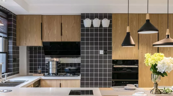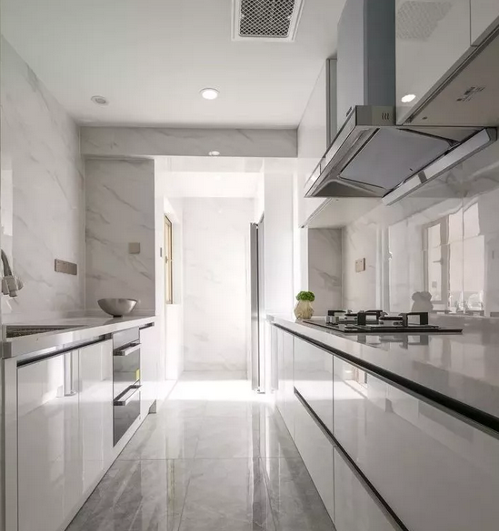 但如果廚房有高柜的話,吊頂時必須注意高柜的總高,建議看下櫥柜圖紙,吊頂高度低于櫥柜高柜的話,高柜就裝不進去;吊頂過高,會導致吊柜和吊頂之間距離過大,影響美觀。