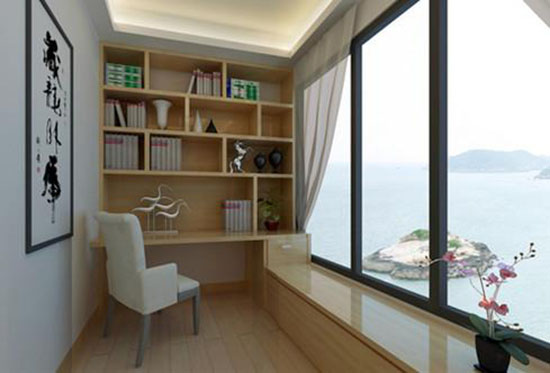 房子面積小,一般都不設(shè)有獨(dú)自的書房或工作間,其實(shí)稍加改造,調(diào)配全體書櫥、寫字臺(tái)、伸縮式吊燈、休閑椅就能將陽臺(tái)“裝扮”成一間獨(dú)具匠心的雅致書房。既可在此與友人敘談,書寫疲倦時(shí)仍是擴(kuò)展軀體、放松神經(jīng)的氧源豐厚的歇息之地。