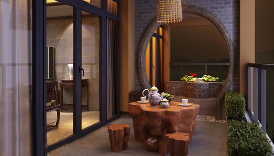 茶館改造并不需要故意的裝修,用玻璃窗把陽臺(tái)關(guān)閉后,在墻面貼上文化石,或者是仿青石板的瓷磚,天花板用雕花木線條勾邊,這些元素都定格了茶館的中式意蘊(yùn)。茶館的資料以竹、木、藤、麻、布等。竹給人清雅脫俗之感,木給人以溫暖結(jié)壯之感,藤、麻給人以天然淳樸之感,而布的細(xì)膩漫長(zhǎng)更是無物可比。