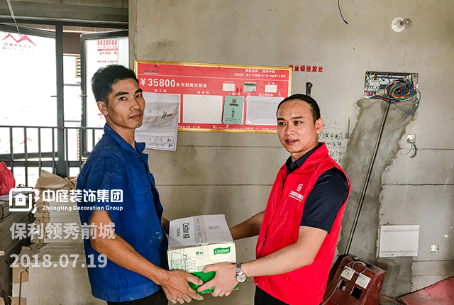 裝修工人群體是企業(yè)的直接生產(chǎn)力,也是集團(tuán)蓬勃發(fā)展的核心競(jìng)爭(zhēng)力,所以每次巡檢工地,都會(huì)給予尊敬的一線工人們一些關(guān)懷和回報(bào)。工程質(zhì)量管理中心吳總和工程部經(jīng)理分別為工人們送上解暑飲品。