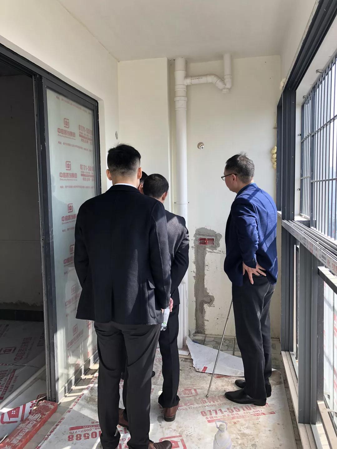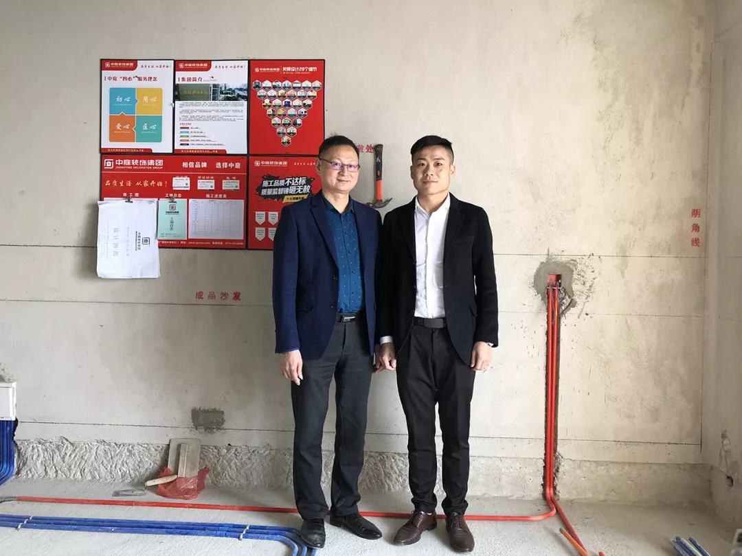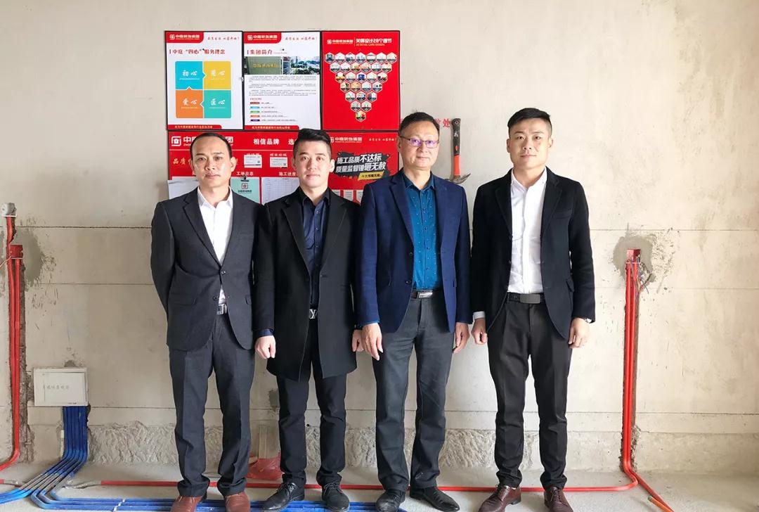 在參觀完中庭裝飾集團(tuán)展示廳及樣板房后,丁總及集團(tuán)領(lǐng)導(dǎo)陪同洪斯君先生一起來到了新民宿舍的工地,現(xiàn)場(chǎng)進(jìn)行巡查和指導(dǎo)工作。