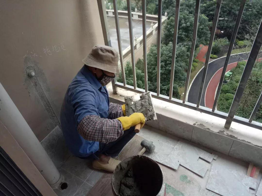 瓷磚出現(xiàn)破損,巡檢人員現(xiàn)場(chǎng)砸掉并責(zé)令整改。