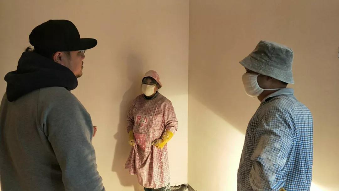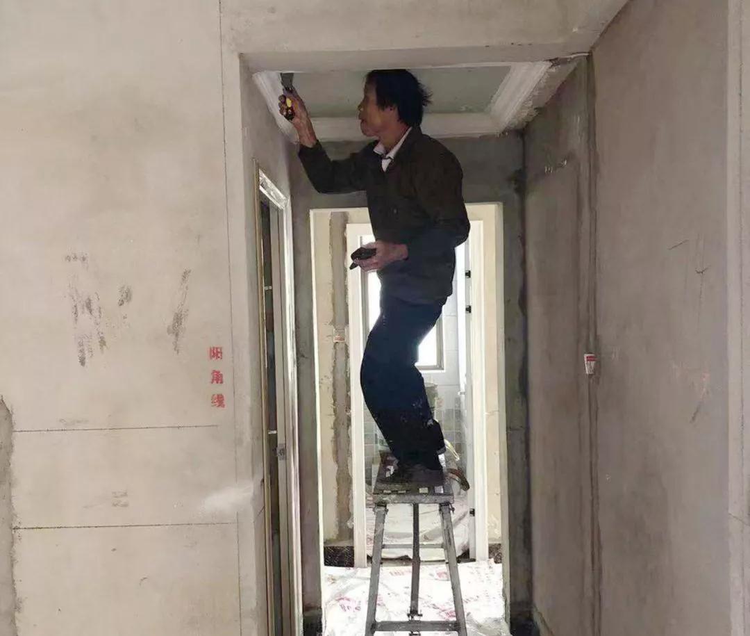 強(qiáng)光手電筒檢查陰角施工是否垂直平整