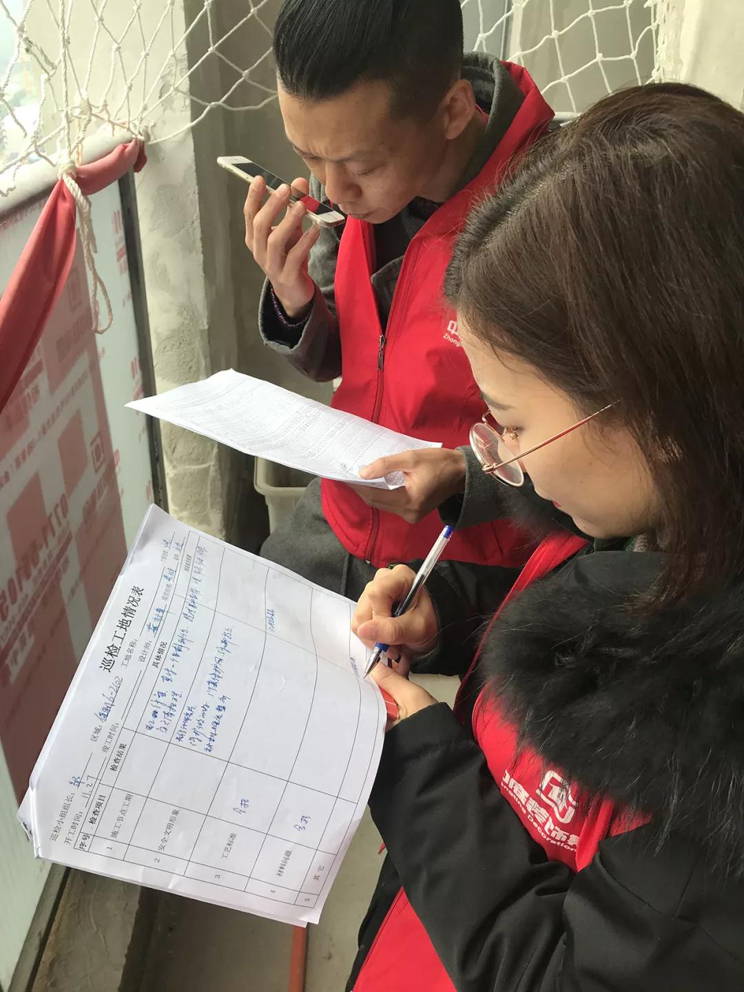 巡檢遇上業(yè)主正在施工現(xiàn)場(chǎng),巡檢人員和業(yè)主交流;業(yè)主表示對(duì)公司的服務(wù)比較滿意,項(xiàng)目經(jīng)理和現(xiàn)場(chǎng)的工人都很好,有朋友需要裝修肯定會(huì)第一個(gè)推薦集團(tuán)。