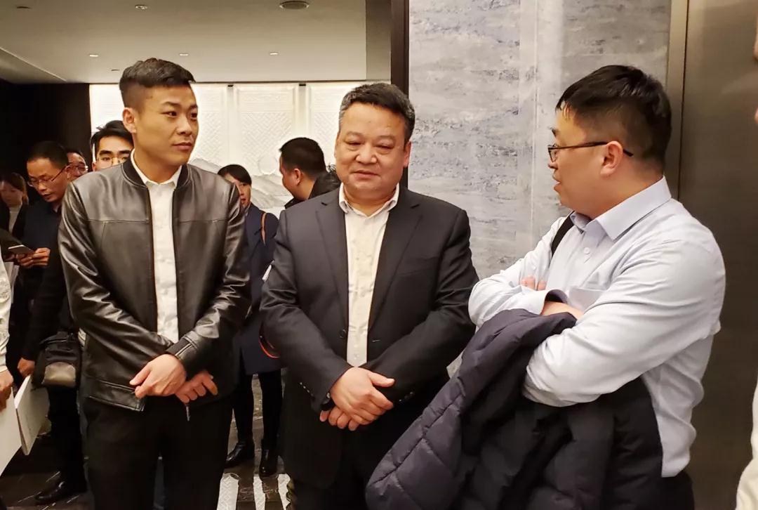 ▲會議間隙,丁胡總裁與亞廈董事長丁海富、浙江裝協(xié)副秘書長袁海泉交流