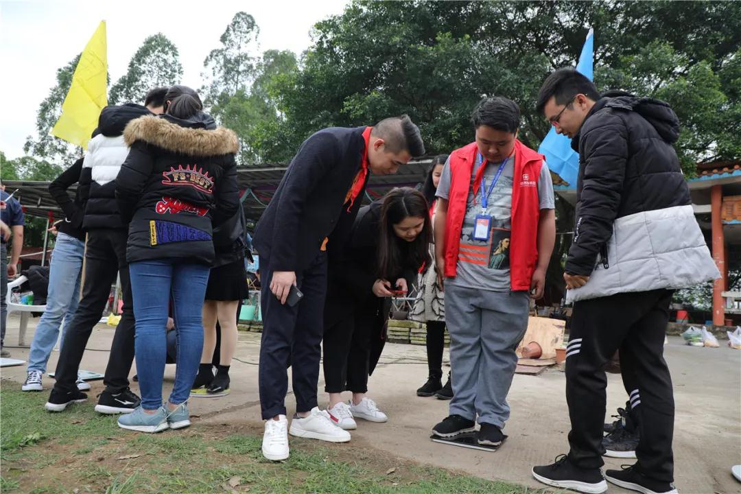 游戲規(guī)則:每隊只有1分鐘商量,以442斤為基數(shù),湊人數(shù)稱重量,實際斤數(shù)與442斤基數(shù)越接近的團隊可以優(yōu)先選擇燒烤食材(燒烤食材限份數(shù))。