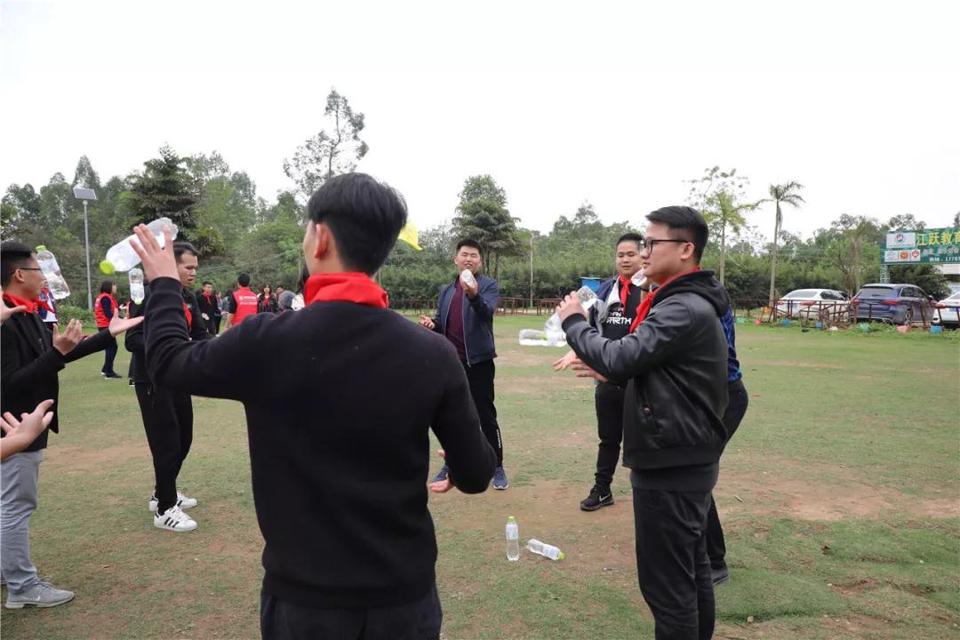 贏取勝利需要謀略,礦泉水瓶傳遞講究的是團隊間的協(xié)作能力,考驗大家默契度的時候到了