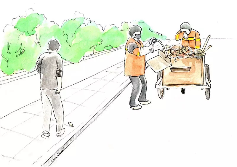 當(dāng)你早晨去上班時(shí),街道上已干干凈凈