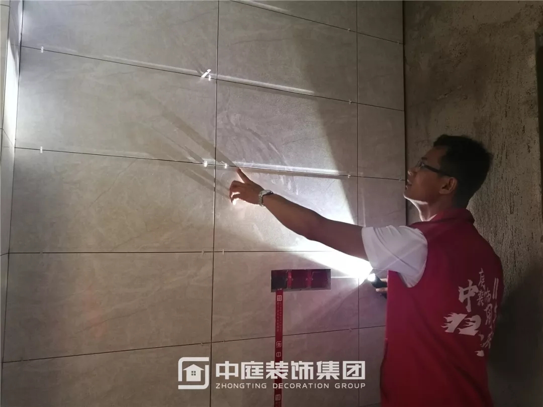 檢查瓷磚鋪貼是否平整干凈,有無(wú)錯(cuò)貼漏貼