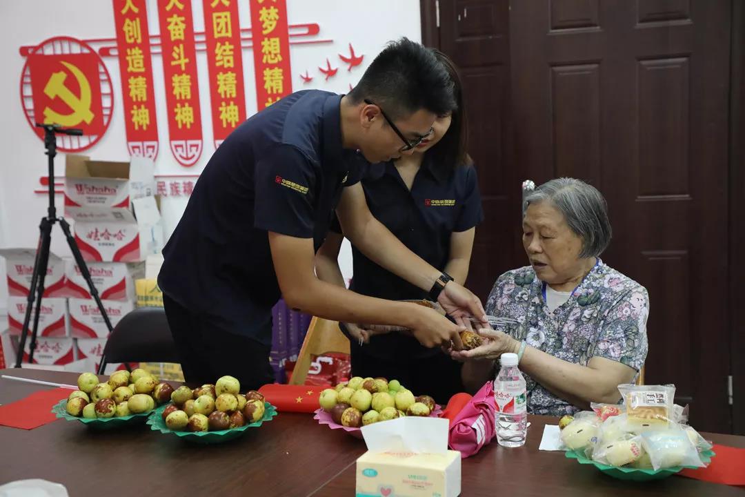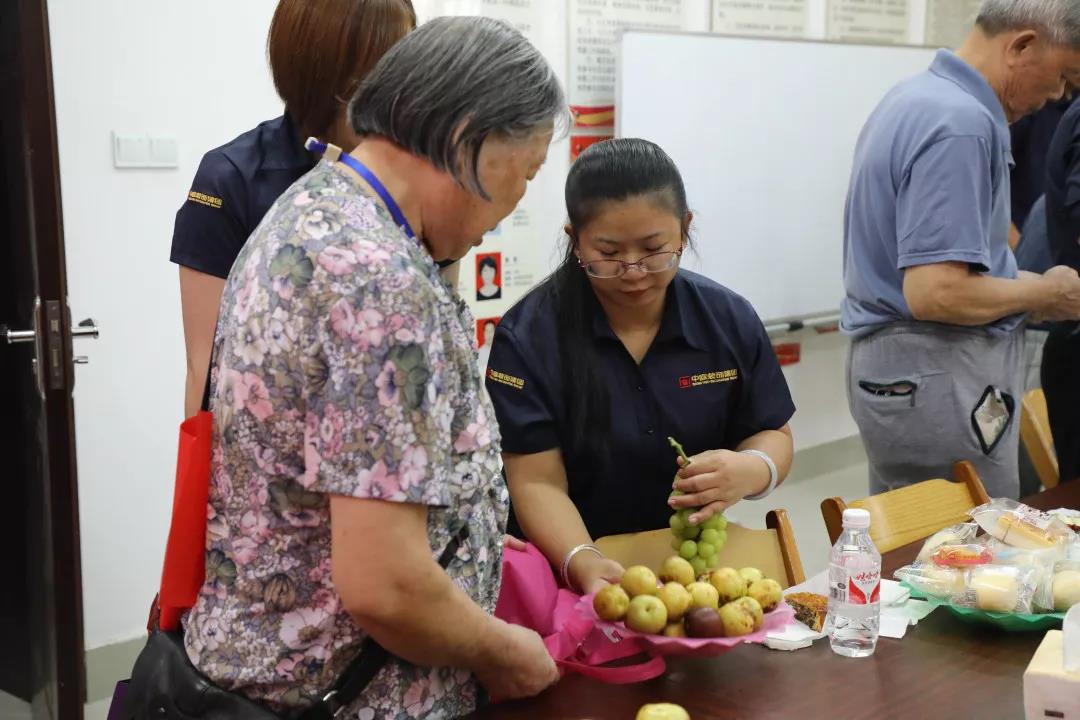 活動(dòng)結(jié)束之際,我們中庭家人們給老人家送上中秋禮物,并幫老人家裝好方便攜帶回去。