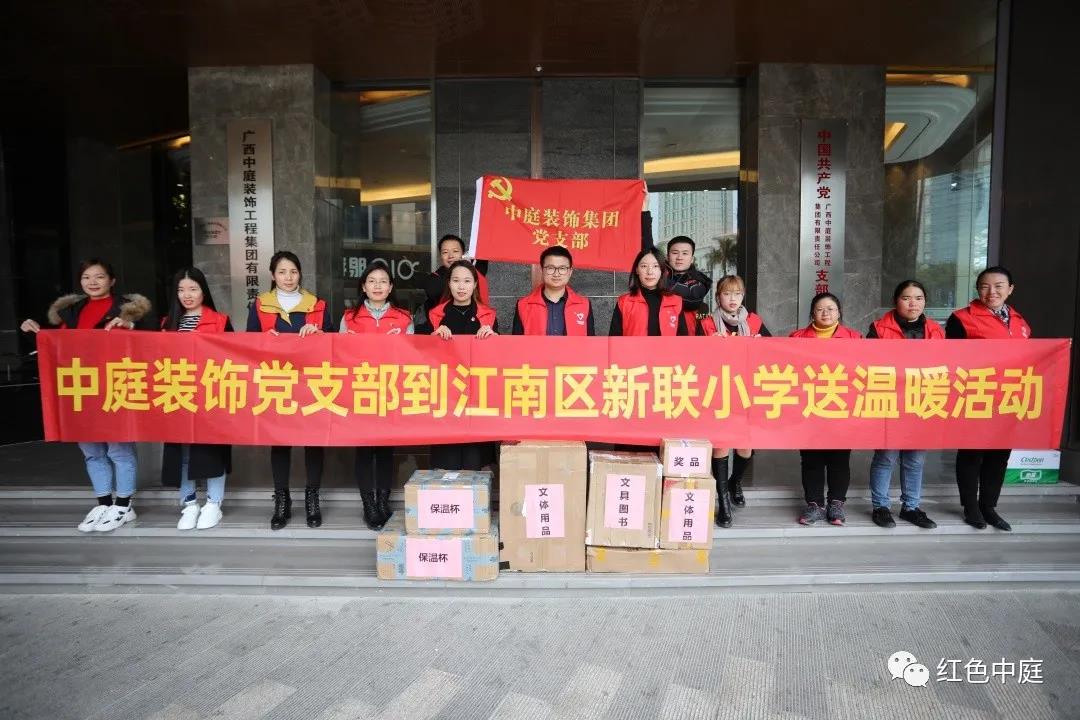 12月22日,廣西中庭裝飾工程集團(tuán)有限責(zé)任公司黨支部部分黨員代表,載著一顆顆樸素的公益助學(xué)之心,來(lái)到了南寧市江南區(qū)新聯(lián)小學(xué)。