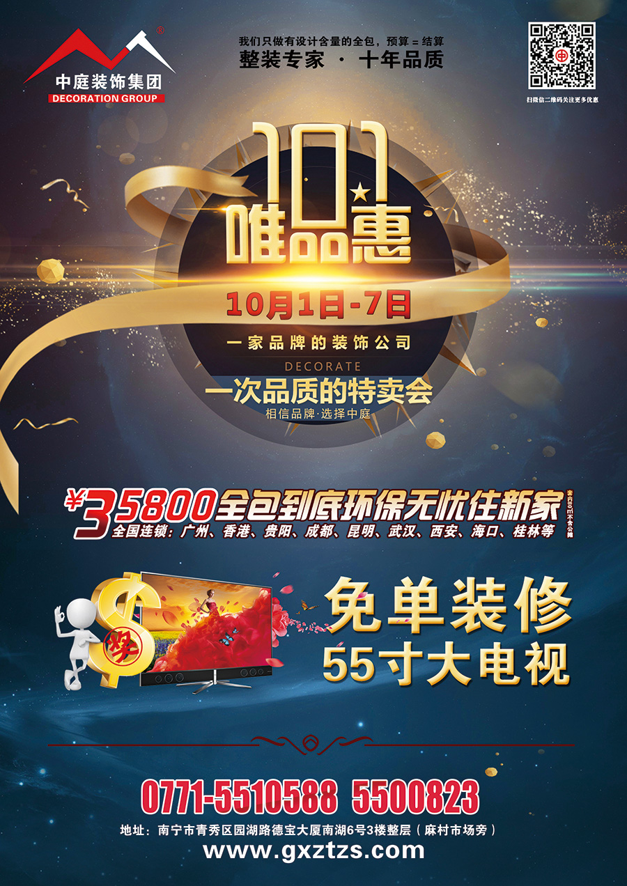 舉國同慶迎十一,中庭裝飾集團推出大型家裝“唯品會”活動,一家品牌公司、一次品質的特賣會,只為給您提供更舒心的家裝!