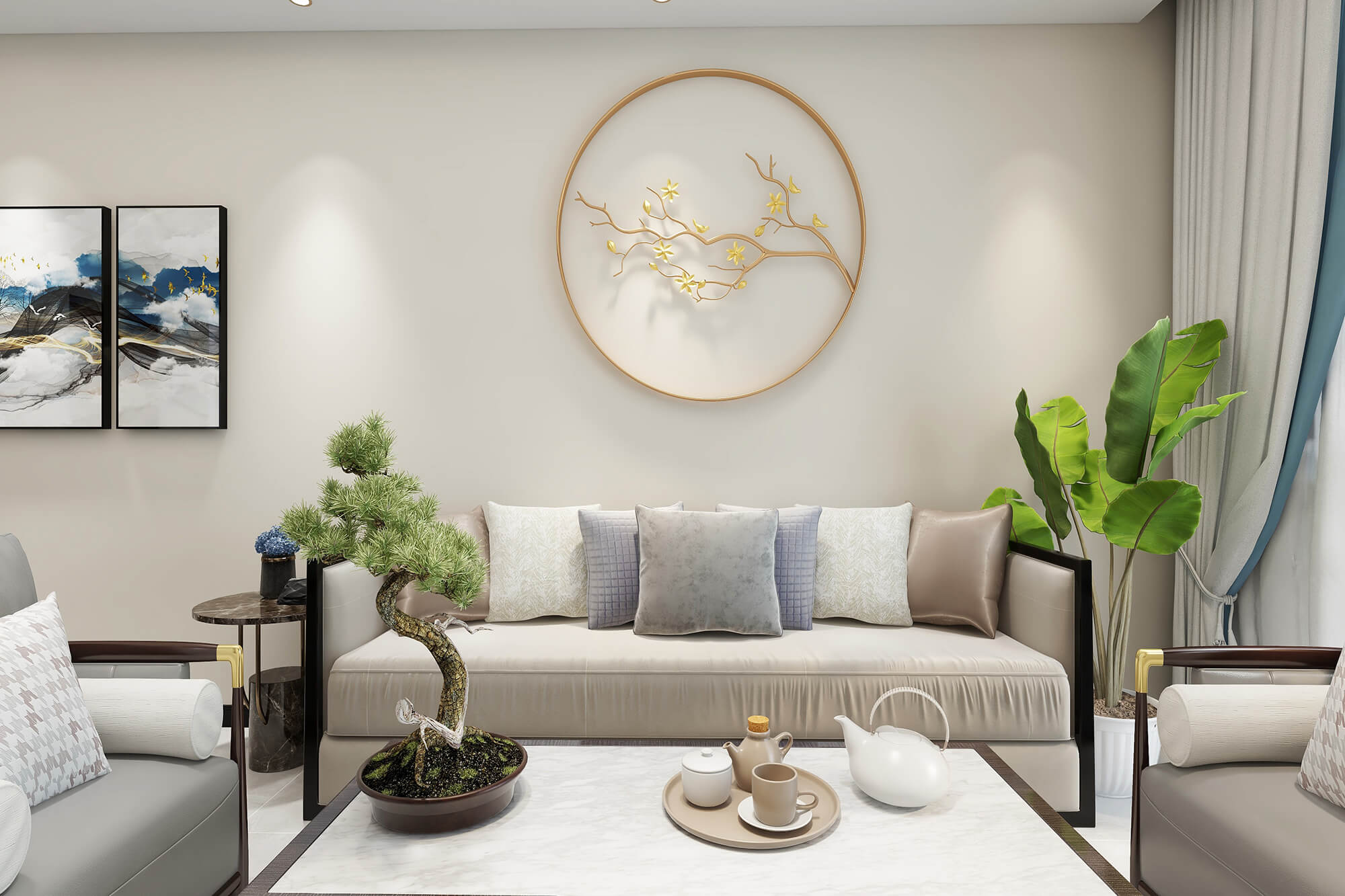 瀏覽量:460新中式風(fēng)格的室內(nèi)空間講究主次分陰、追求合理的空間布局和家具擺設(shè)。同時非常強調(diào)融入自然,并且注重人與空間的關(guān)系。在這種追求人與自然融合的理念下,外部環(huán)境也可視為室內(nèi)空間的延伸,讓人在家居空間也能感受到室外的自然景致。此外,室內(nèi)空間常在一些細(xì)節(jié)上勾勒出禪宗的意境,完美地將中國人內(nèi)在的哲學(xué)觀念展露于室內(nèi)裝飾中。側(cè)重于表達(dá)傳統(tǒng)空間的意識形態(tài),同時對文化習(xí)俗和美學(xué)意識進(jìn)行了更深層次的考量。因此,在空間設(shè)計中會更注重傳統(tǒng)文化的傳承,以達(dá)到提升家居空間品質(zhì)的目的。此外,通過提取傳統(tǒng)家居的精華元素和生活符號進(jìn)行合理的搭配、布局,使整體的家居設(shè)計中既有中式家居的傳統(tǒng)韻味,又能夠讓傳統(tǒng)元素更具筒練、大氣、時尚的特點,使現(xiàn)代家居更富有中華文化韻味。