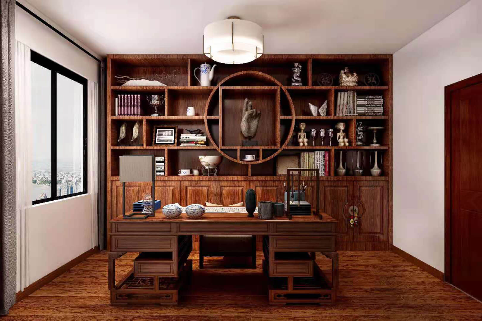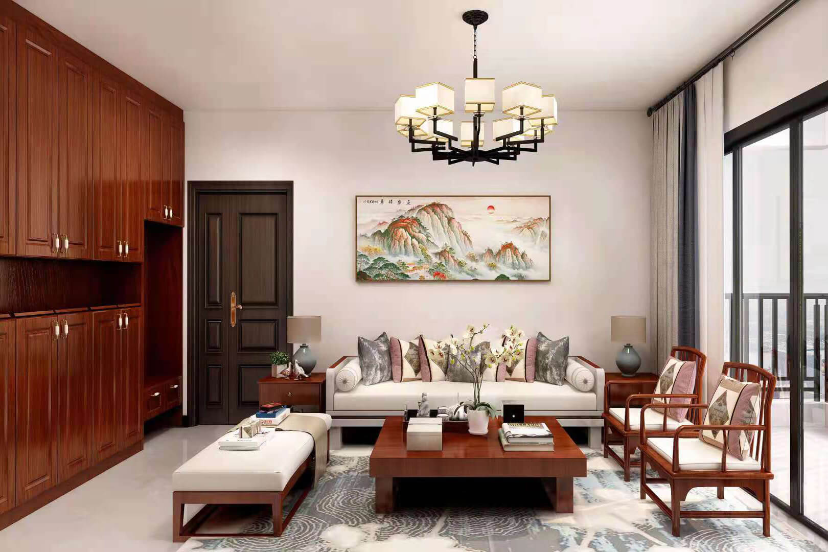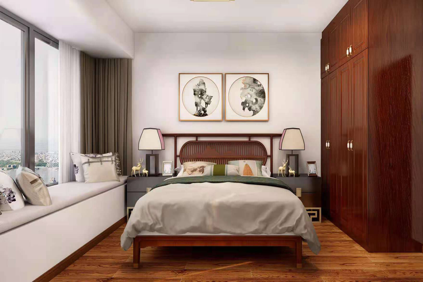 瀏覽量:552房子整體家具以紅木為主??蛷d采用白色地磚和留墻面與家具搭配讓顏色看起來更為簡潔,不做裝飾的吊頂讓整體的空間看起來更寬大。房間采用紅木地板與房間家具色彩呼應(yīng),墻面留白用水墨畫裝飾讓房間裝飾更豐富,也讓色彩更多了層次感。