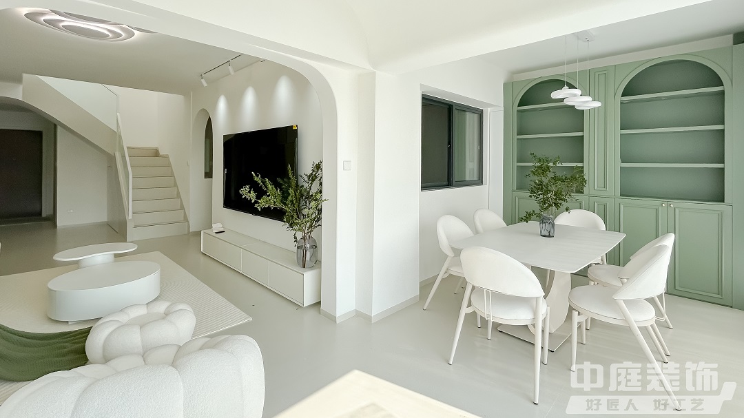 瀏覽量:449這是一套118㎡的復(fù)式住宅,將清新綠與奶油色巧妙融合,營造出一種寧靜而溫馨的氛圍,如夢如幻的浪漫生活由此開始,大面積窗紗將室外光線過濾后傾撒入客廳。