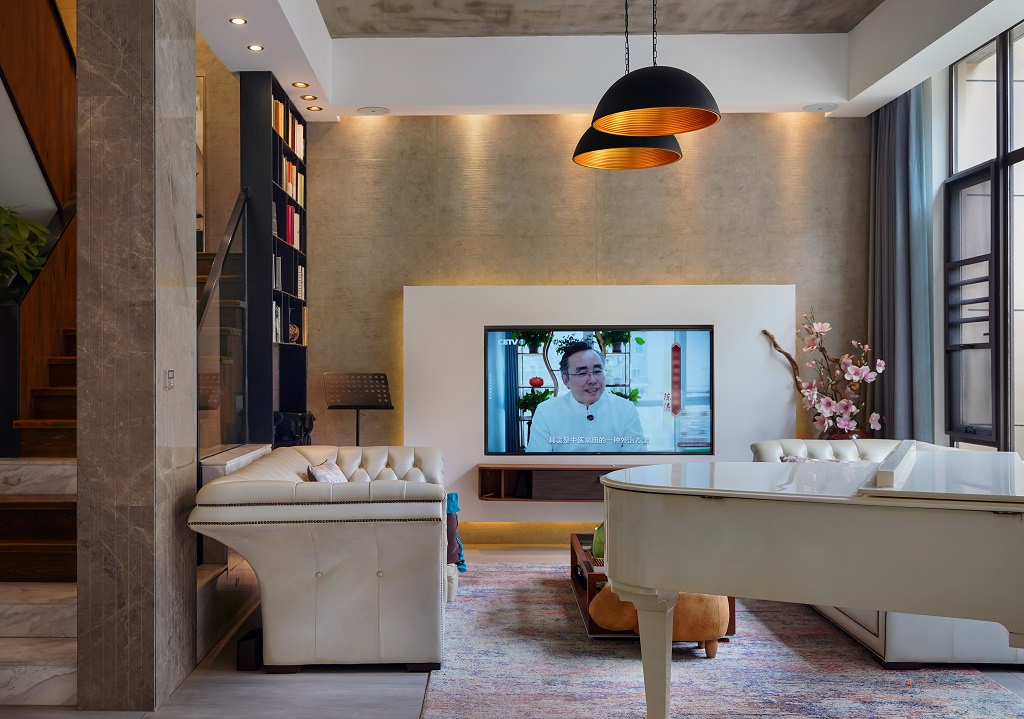 瀏覽量:101這套房子裝修風(fēng)格是工業(yè)風(fēng)與輕奢風(fēng)的巧妙融合,日常又不失格調(diào)。水泥質(zhì)感的吊頂保留了工業(yè)風(fēng)的粗獷感,搭配暖黃色的吊燈,瞬間讓空間溫馨起來。墻面采用質(zhì)感石材與簡約板材結(jié)合,電視背景墻的設(shè)計簡潔大氣。家具選擇了皮質(zhì)的輕奢款沙發(fā),觸感舒適且顯質(zhì)感。樓梯區(qū)域很有特色,木質(zhì)臺階搭配金屬扶手,旁邊的綠植和書架為空間增添了生機與文藝氣息。還有那架白色鋼琴,讓整個家在日常中多了一份藝術(shù)氛圍,無論是休閑還是待客,都能感受到這份融合了工業(yè)硬朗與輕奢精致的舒適日常。
